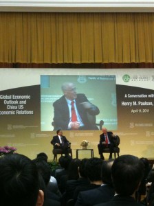 4月初有幸得到兩張美國前財政部長 Henry Paulson 在香港論壇的門券,跟我那位真正的雷曼苦主朋友去聽一聽。