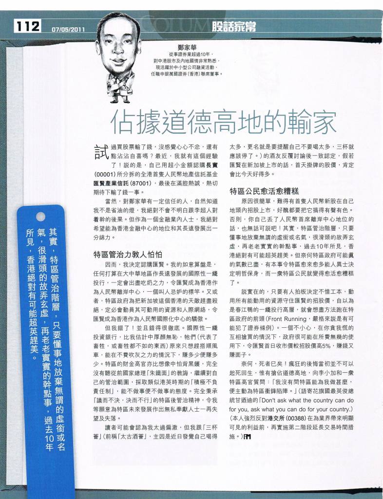 早兩星期在 iMoney 讀到一篇關於匯賢上市情況的評論,與我的分析方向一致,有人認同,輸錢的心情都好番少少。唯一分別是人家看勢色不對已走了貨,我就選擇繼續坐艇當收下人民幣息啦!