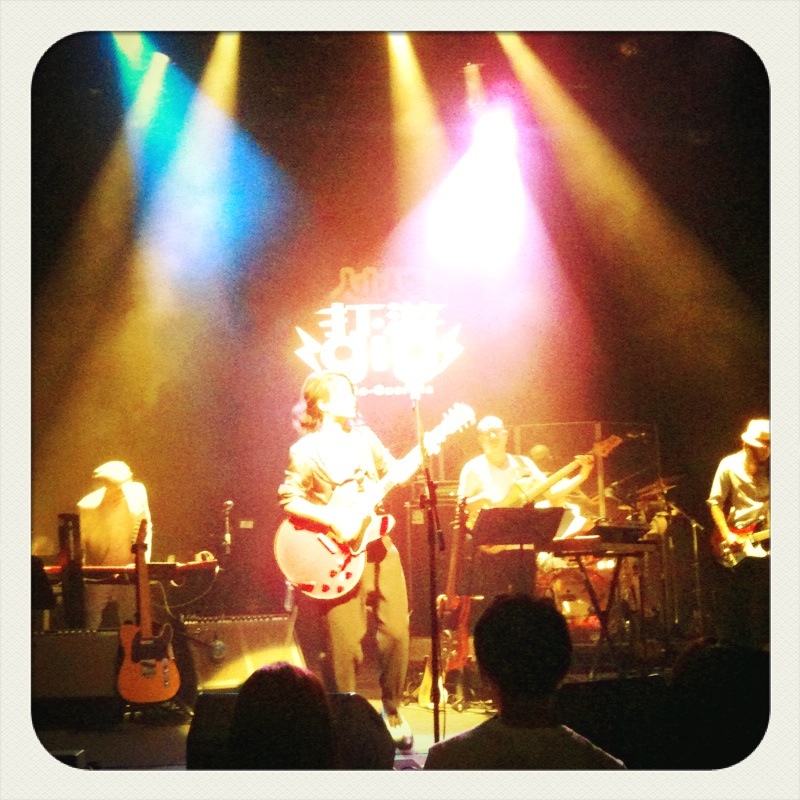 噢,還要多謝妳的紀念品!話說在音樂會encore再 encore 接近尾聲時,興奮的盧凱彤將她彈吉他的pick 隨手向觀眾的左邊拋出去,落點就剛好在我們前面那一行。坐在前面的兩位女粉絲飛身想將它接下,但撲空了……