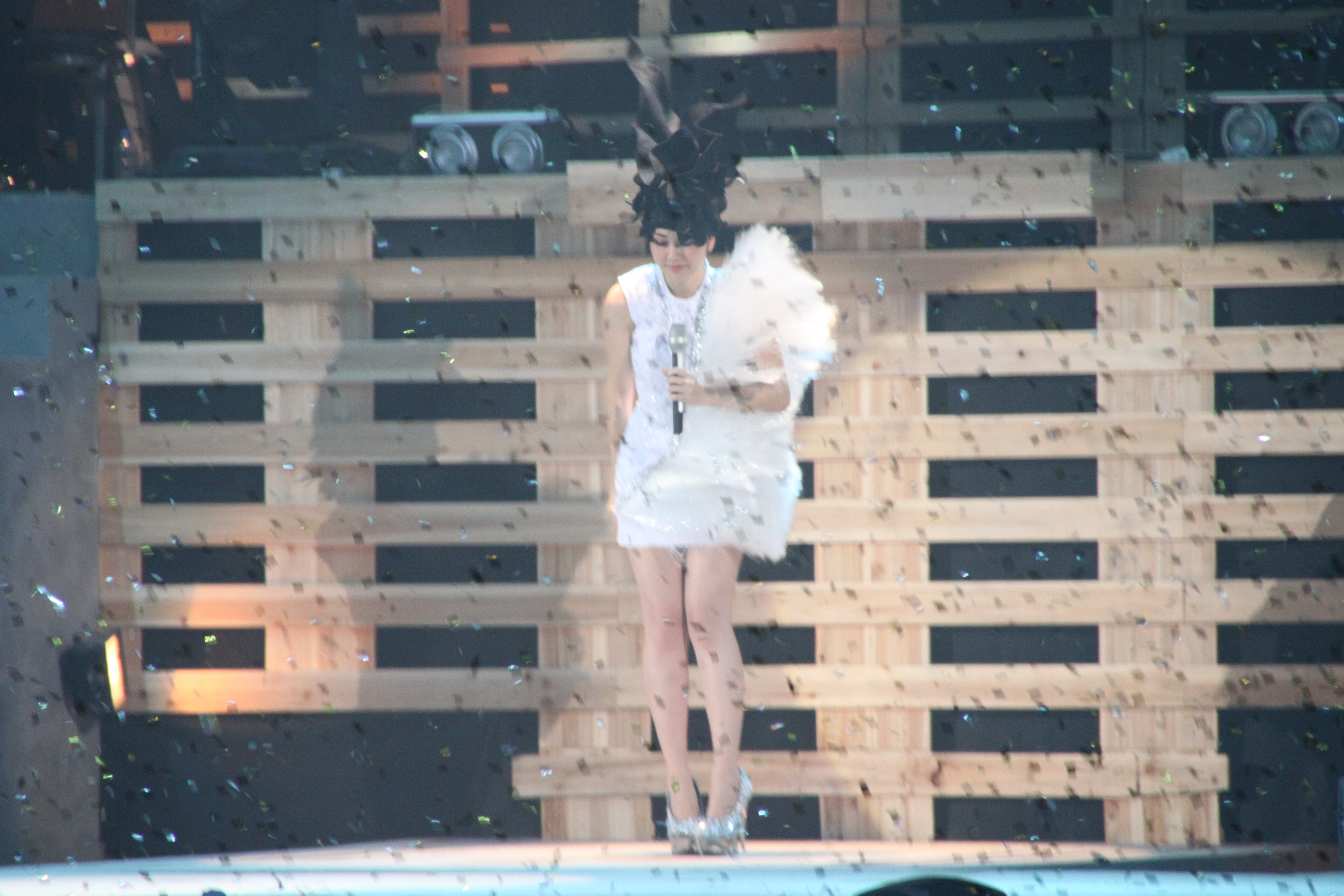 唔知點解,她給每個觀眾派了風車而不是 pong pong 棒,我想她覺得風車有幸福的感覺吧。但她又沒有叫大家在她唱歌時揮動或什麼的。