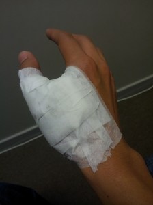 Posted on January 18, 2012January 18, 2012 by Platoooooo 沒有拇指的日子 沒有拇指的日子 想開汽水都不能 拿起手機都沒力 拿起鉛筆寫不起 拿筷子也不容易 沒辦法 我只有快快看 Physio 拇指被按得疼到要死 我也狠狠的莫不出聲 用力的搓 再施金針 他再用力地檢查我手 AH~~~~ (痛死我啦~~~) 鑰匙插在汽車裡我想開車啦 可是我扭不開 我用力一扭拇指痛得呀 一聲慘叫 AH~~~ 在接受治療了以後 手指頭快點的好啦 A~~~men~ Share this: Click to email a link to a friend (Opens in new window) Email Click to share on Facebook (Opens in new window) Facebook Like Loading... Related