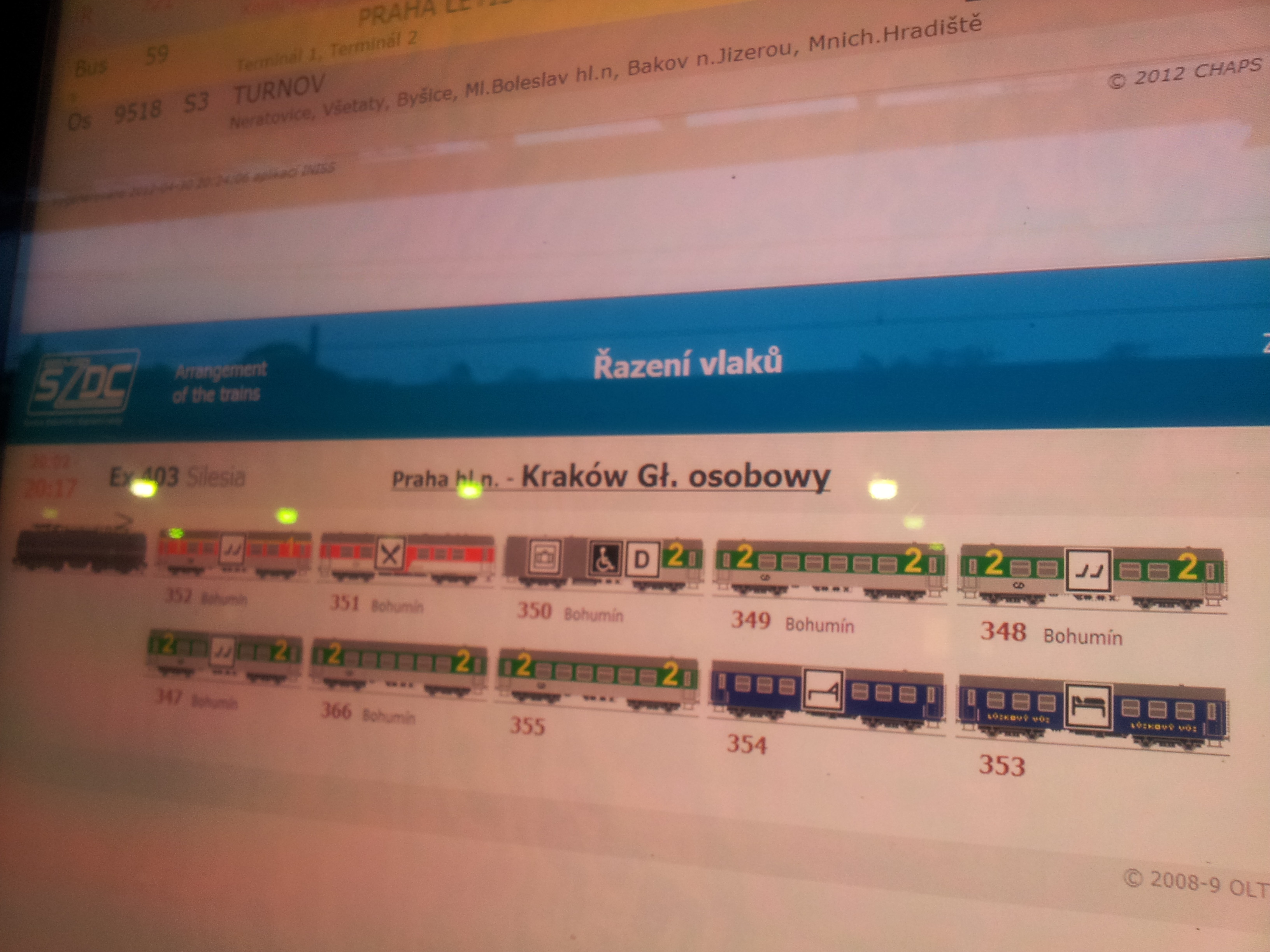 Cam 起初都不是太想,怕火車搖晃無覺好瞓,第二天無精神玩仲浪費,不過礙於行程緊湊,所以都勉強答應。我雖然都幾醒瞓,但上次在西班牙從馬德里 (Madrid) 坐過 red eye 去巴塞隆納 (Barcelona),感覺良好,所以對這個慳了時間還慳了酒店錢的方法舉腳贊成!而當我們上網查火車時間表時,發覺由布拉格 (Prague) 去克拉科夫 (Krakow),與由克拉科夫 (Krakow) 去布達佩斯 (Budapest) 都各自只有一班直通車,而兩班車都是 red eye!呵呵,咁無辦法啦,Cam 連最後反對的機會都沒有了!