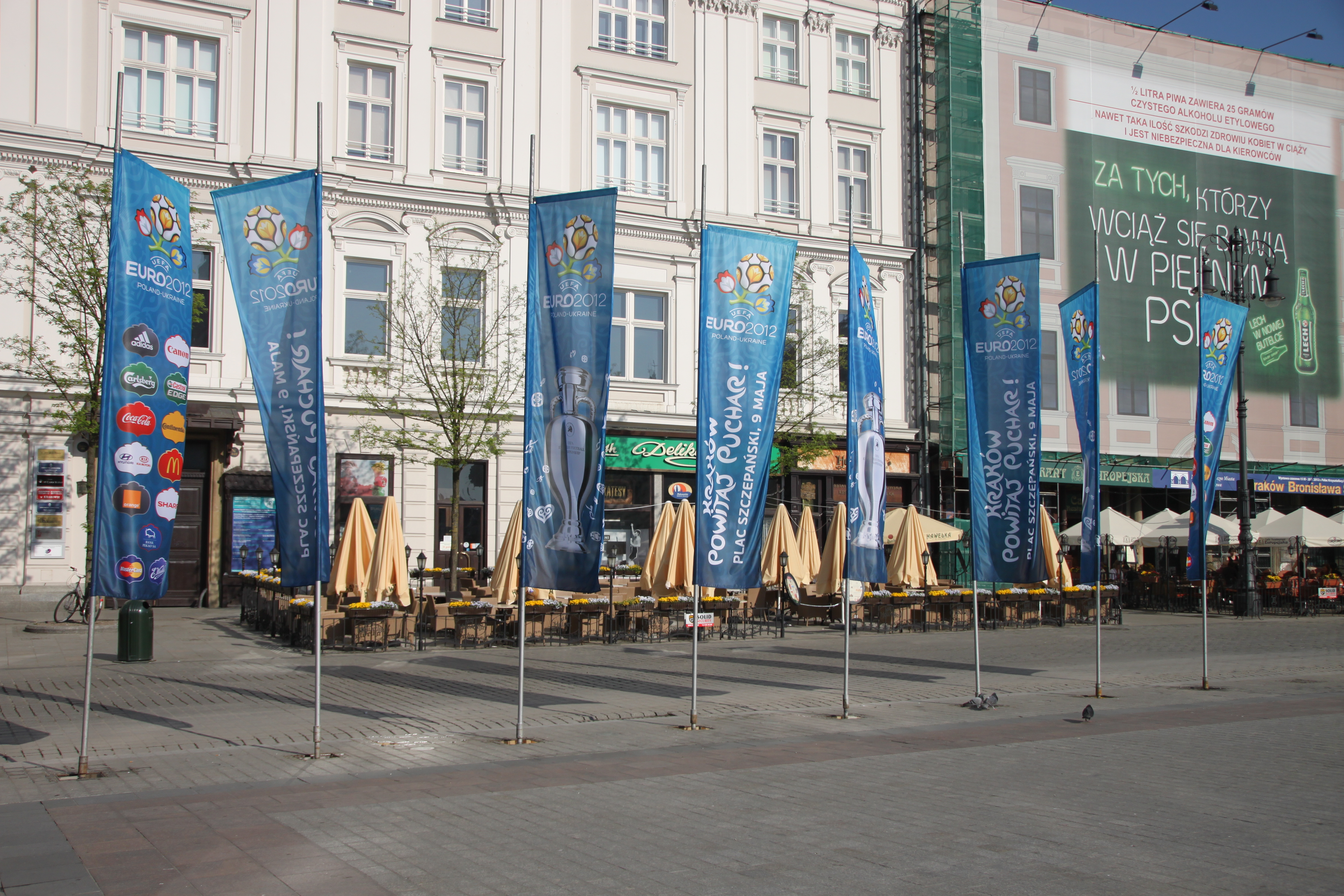 Posted on July 8, 2012July 6, 2012 by Platoooooo 去到波蘭,猛然醒起它好像是今年歐洲國家盃的主辦國之一!還有一個月就歐國盃了,掃番D紀念品都好呀! 一走出克拉科夫 (Krakow) 的遊客熱點 Main Market Square 就見到這幾支旗在廣場中飄搖,心諗附近梗有一間半間紀念品舖頭。點知… 無! 一間都無! 有無搞~~~ 錯! 雖然克拉科夫不是主辦城市之一,但這麼辛辛苦苦拿到的主辦權,比賽開始前一個月都無紀念品賣,點賺錢呀?! 最後2天在克拉科夫的日子裡,我只見過一副歐國盃的啤牌… Share this: Email a link to a friend (Opens in new window) Email Share on Facebook (Opens in new window) Facebook Like Loading... Related