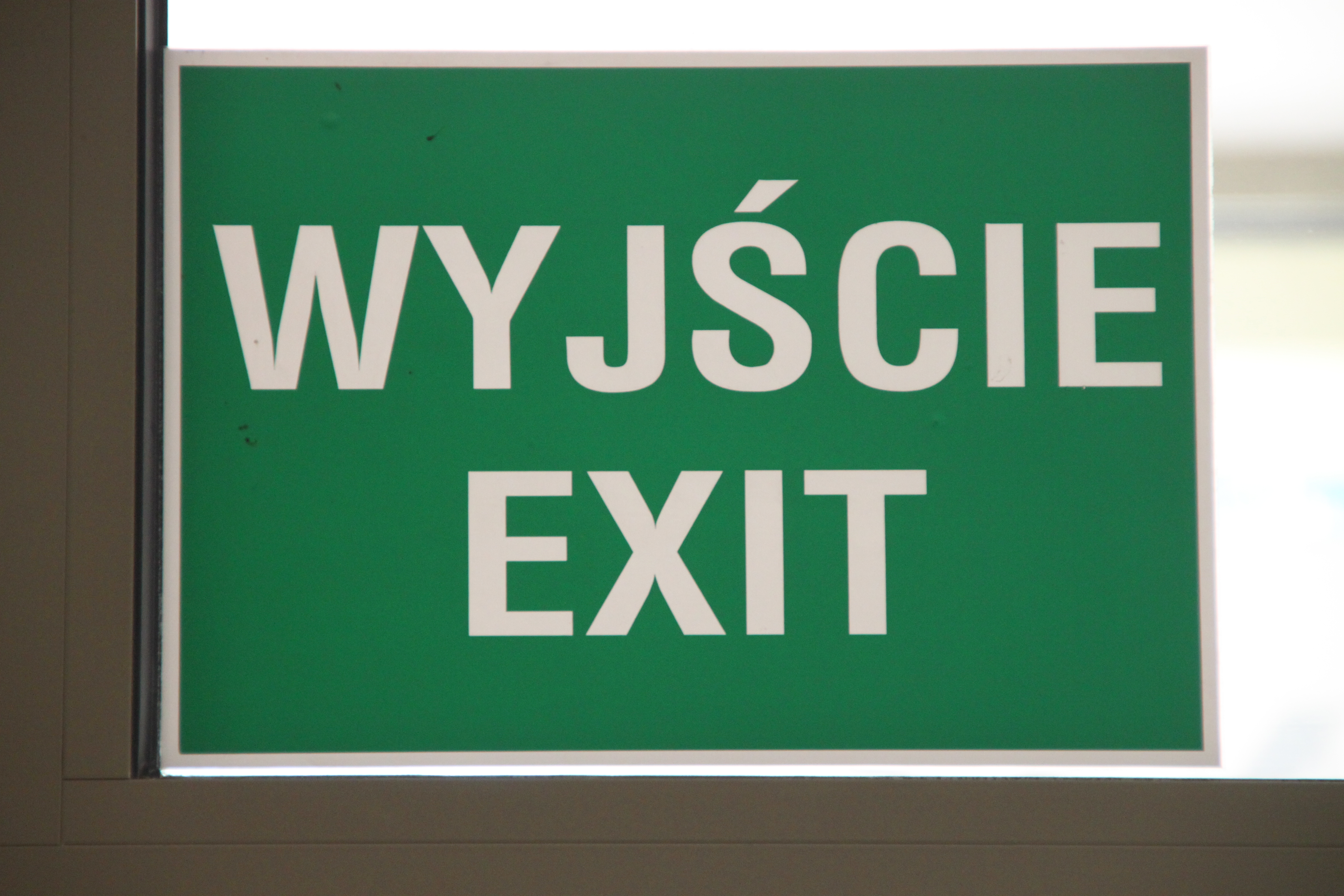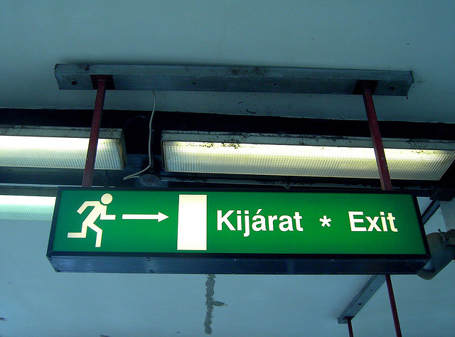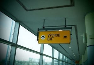 不過令我們驚奇的是,捷克 (Czech)、匈牙利 (Hungary)、波蘭 (Poland) 三個都同受俄羅斯 (Russia) 強烈影響的國家,他們各自的語言原來不是源自同一語系。布達佩斯的一位的士叔叔話,他到捷克和波蘭時是看不懂聽不懂的。而事實上,他們文字的串法的確很不同,就譬如下面的兩個逃生牌,兩個「exit」的串法就已經是差天共地了!