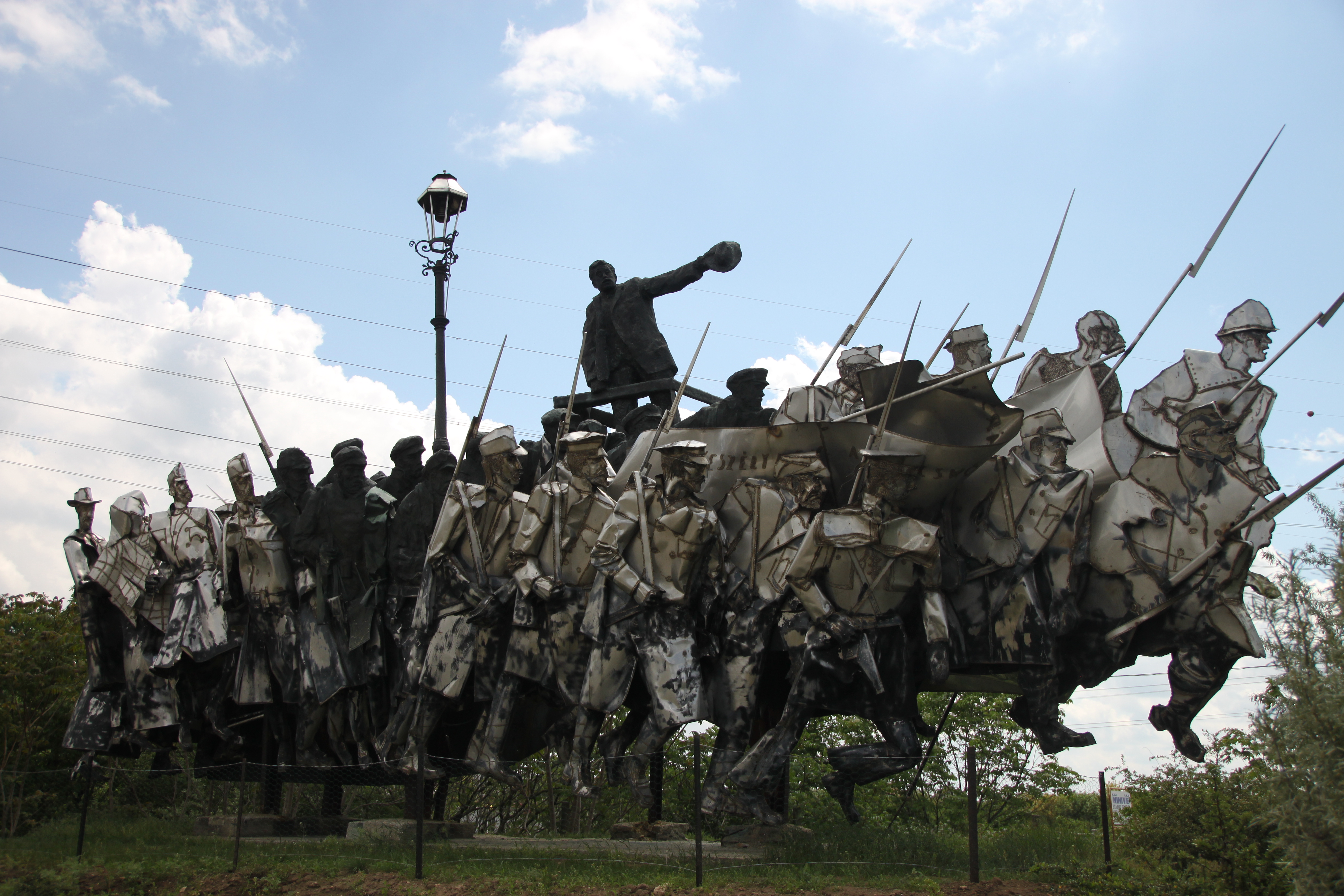 匈牙利19世紀著名的革命家Béla Kun 氣定神閒地帶領著軍隊。不過原來個雕像有一個玄機 — 就是在 Kun 後面的燈柱!在匈牙利文學當中,燈柱有被行刑吊死的意思,代表他最終下場是在蘇聯被拘捕及吊死……
