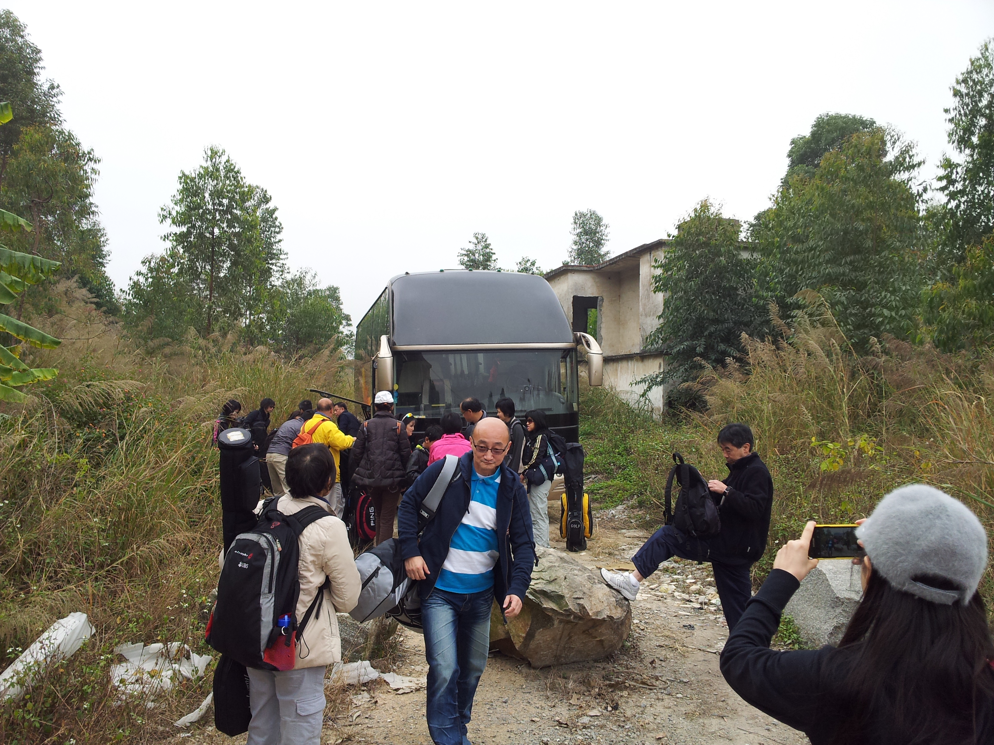 司機小哥懶理我們這班港燦,勇字貼在車頭繼續向前走。起初都見到一些小屋在路旁。但再走了一段路,我們已經陷入一遍荒山野嶺當中!坐在前頭的阿Sir不斷的向司機小哥說:「不對路,掉頭!掉頭!」但司機小哥繼續向前駛。