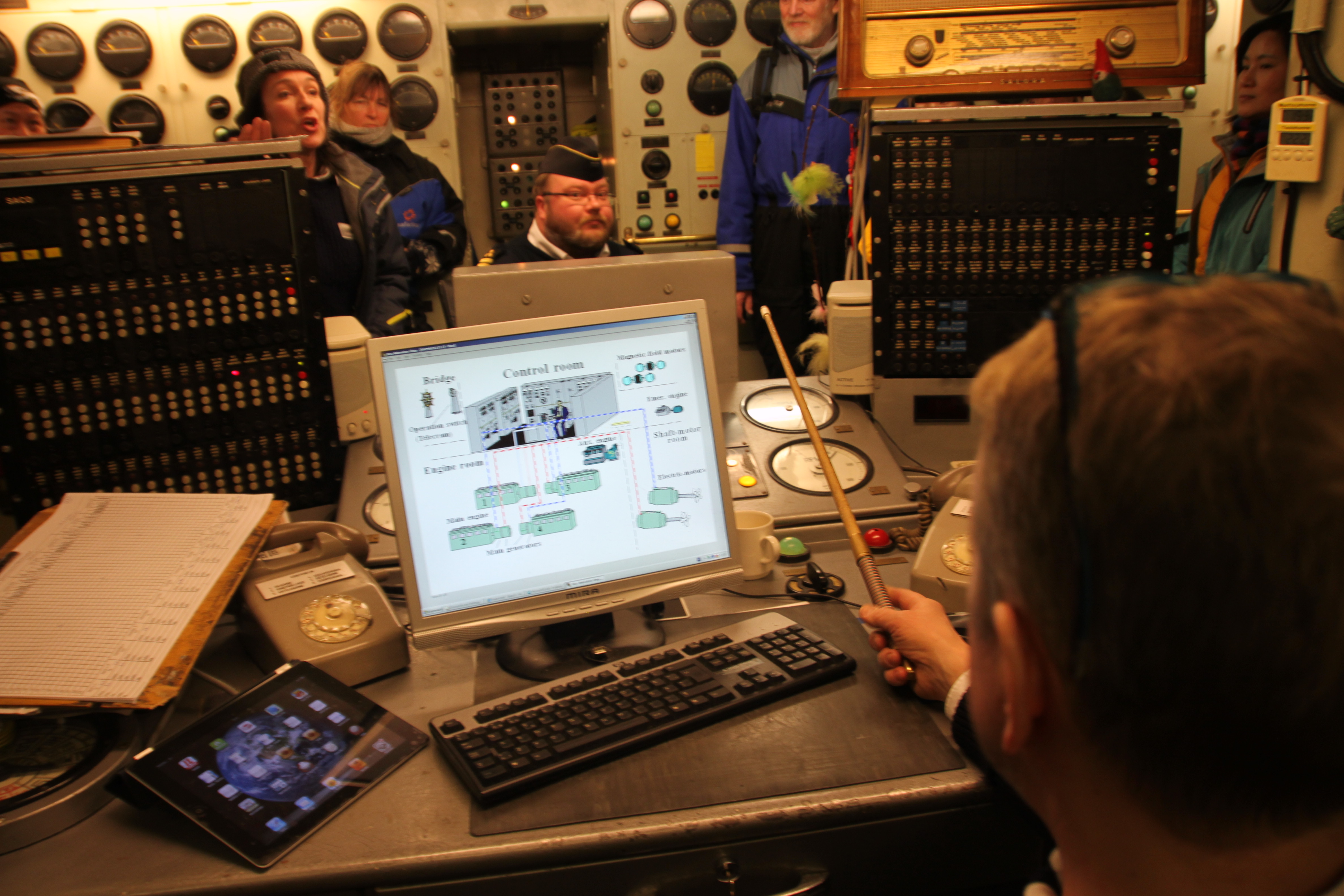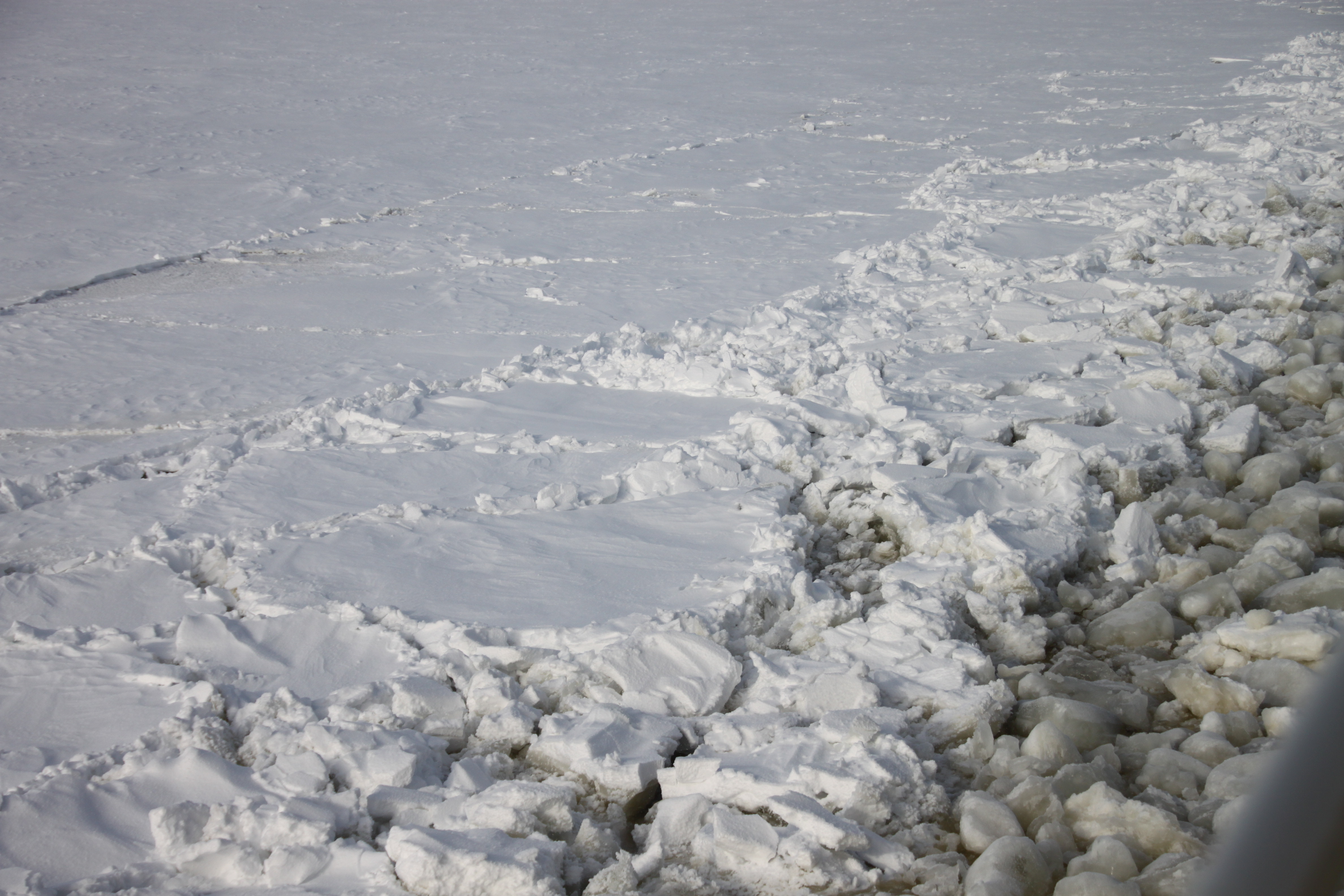 我起初以為,破冰船應該用一些極堅硬的物料造船頭,形狀尖尖的,似一把斧頭「將冰山劈開」!我當然是… 錯的…… 原來破冰船係就係要有一個堅硬的船頭,而且要相當墜手,船底卻要成圓圓的流扇形。船會利用圓底由水中滑上冰塊之上,再利用重量壓碎冰塊,做成「破冰」!我聽了船上的導賞員的解釋後,跑到船頭看,係喎!見到冰塊將是被人由上而下震碎,而不是被利器弄碎!我今日真係學到好多野呀!