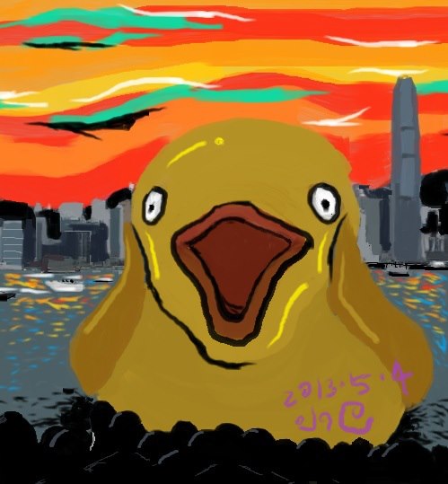 對於這篇鴨瘋,老豆話:「邊有人諗過隻鴨會咁紅?如果以前我同你講,將你沖涼缸隻黃色鴨仔整大佢就係一件紅爆藝術品,你會話我癡線!」