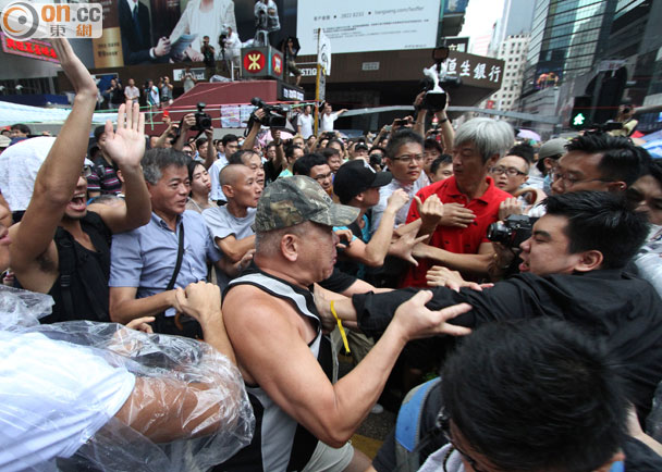 我很想知道,一個政府望著自己的市民立場敵對到要在旺角開拖,卻只會站在電視箱後面說一些風涼說話 (如只懂重覆叫人離開高危地方、譴責所有人的暴力行為 — 誰是所有人?包括被打者?),是抱著什麼理念去管治這片土地?越亂越過癮?對於那些「反佔中」的朋友,我不是在嘗試挑戰你們的理據,但亦請你們看清楚政府是否站在你們的一邊。你們會埋怨「佔中」人士癱瘓香港、舖頭生意都無得做,但事實上警察不敢清場怕輿論壓力之時,高高在上的各位政府官員又做過什麼?不可能無得清場就無其他解決問題的辦法吧?連談判都是靠學聯提出的,政府根本無想過盡力去化解這次的事情,去恢復秩序幫各位「反佔中」人士得回你們想得到的安居樂業的生活,反而是等你們看得不耐煩時借你們把口去打輿論戰!即是你們也只是高高在上的各位政府官員的棋子和犧牲品罷了!