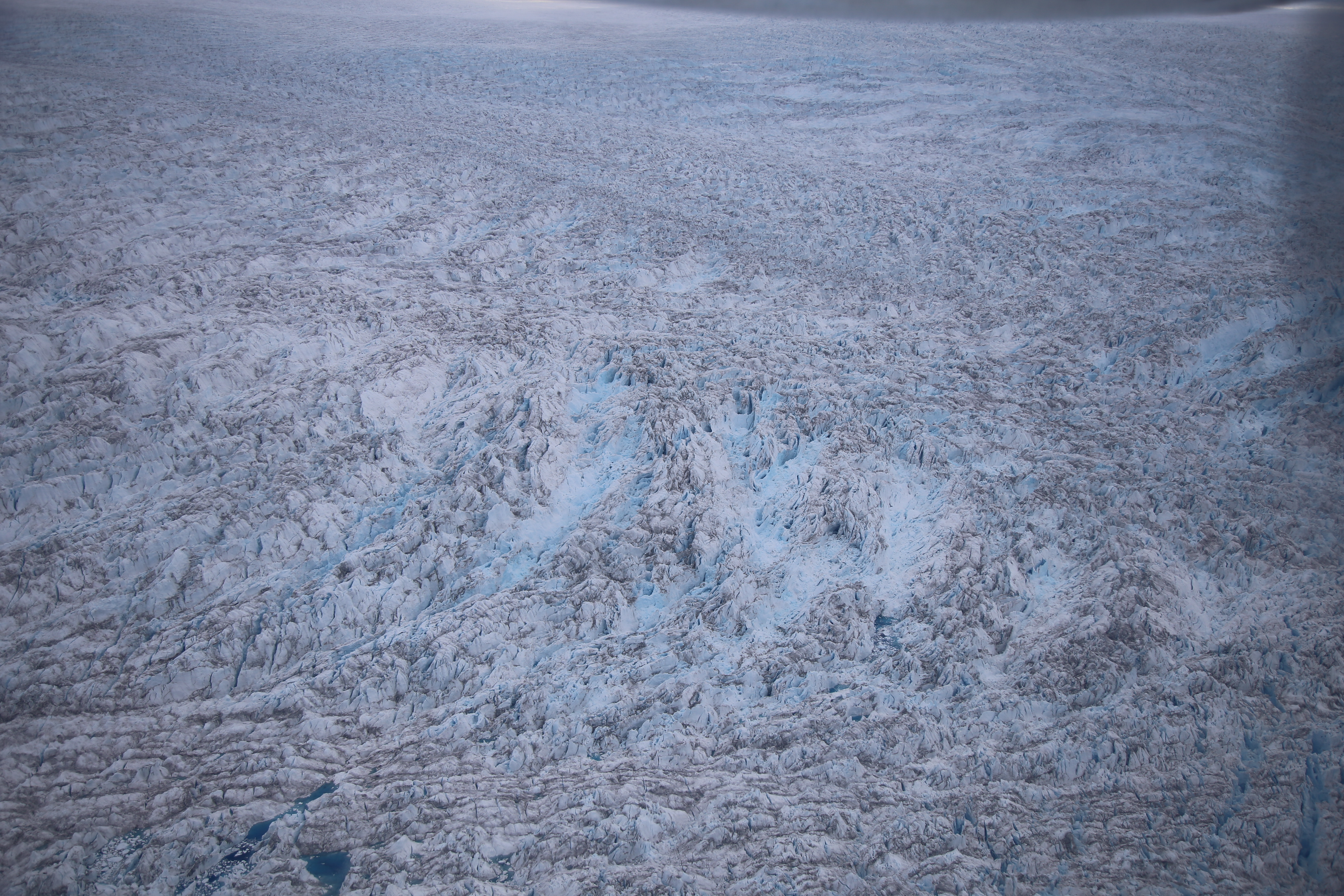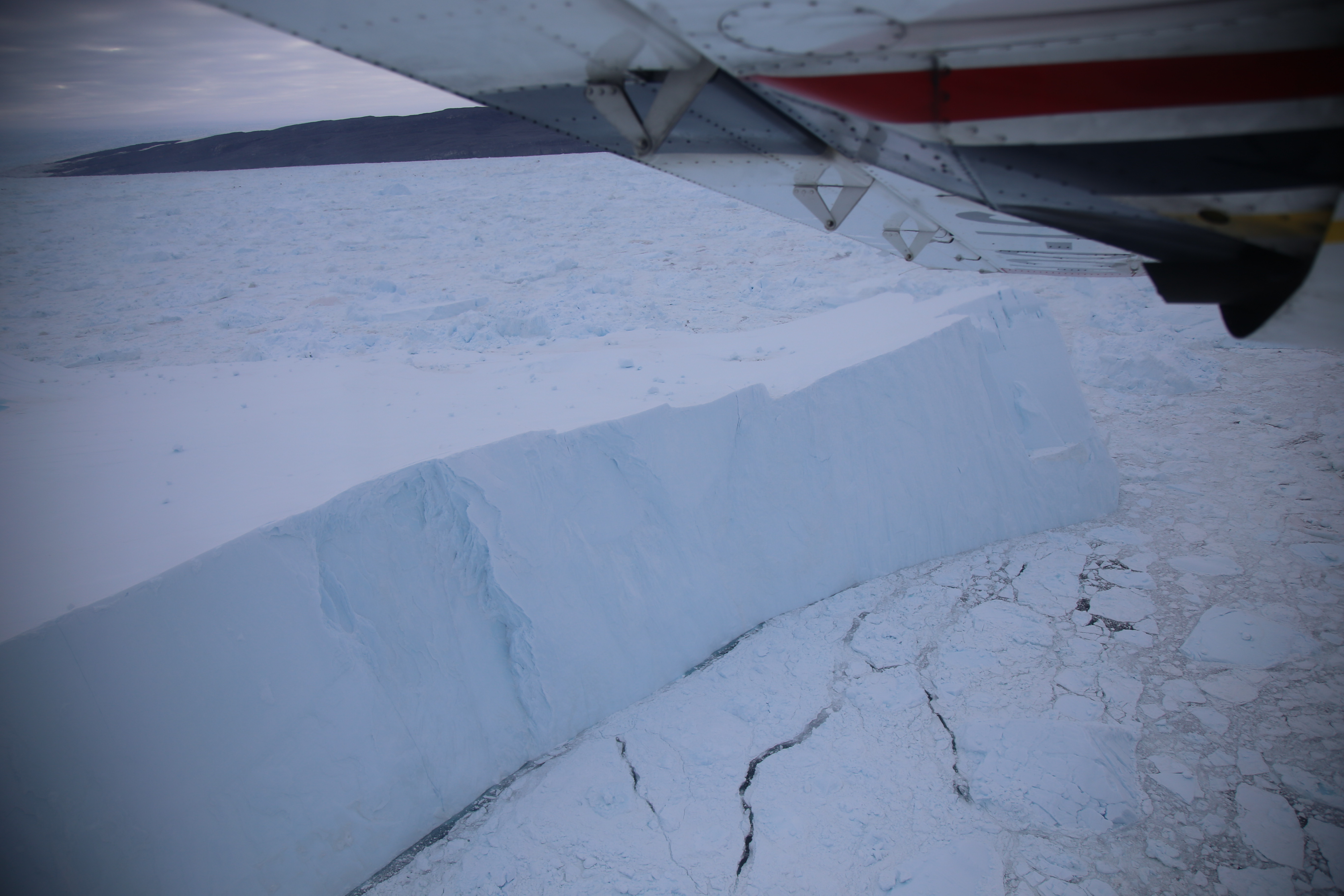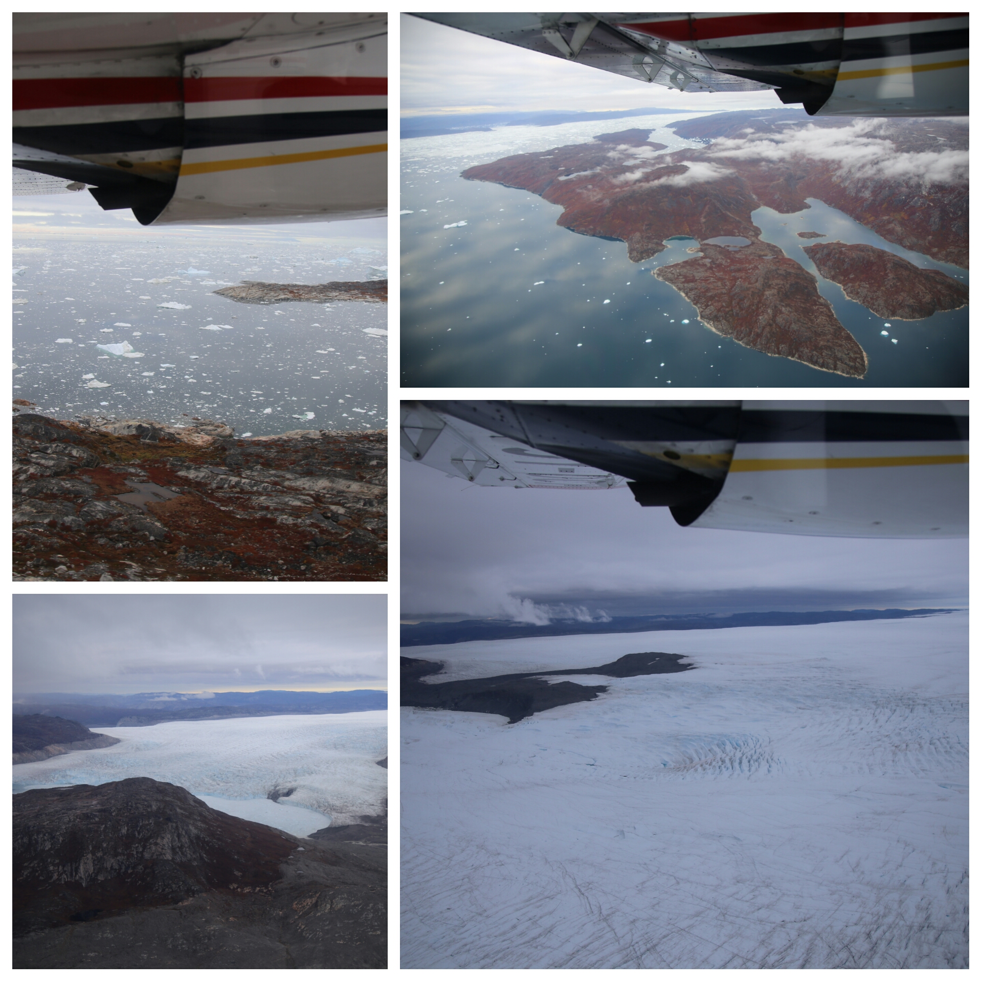 本來,我們訂了乘搭直昇機實地上 Kangia「踩場」,可惜連個天都唔鍾意我,當天早上大霧瀰漫,能見度太低而被逼取消;我們行程又太緊逼,再下一次起機時我們已經離開了 Greenland。唯有退而求其次,在我們離開 Ilulissat 當天早上,坐上小型飛機飛越 Kangia 冰川,在高空遠眺這片冰地。