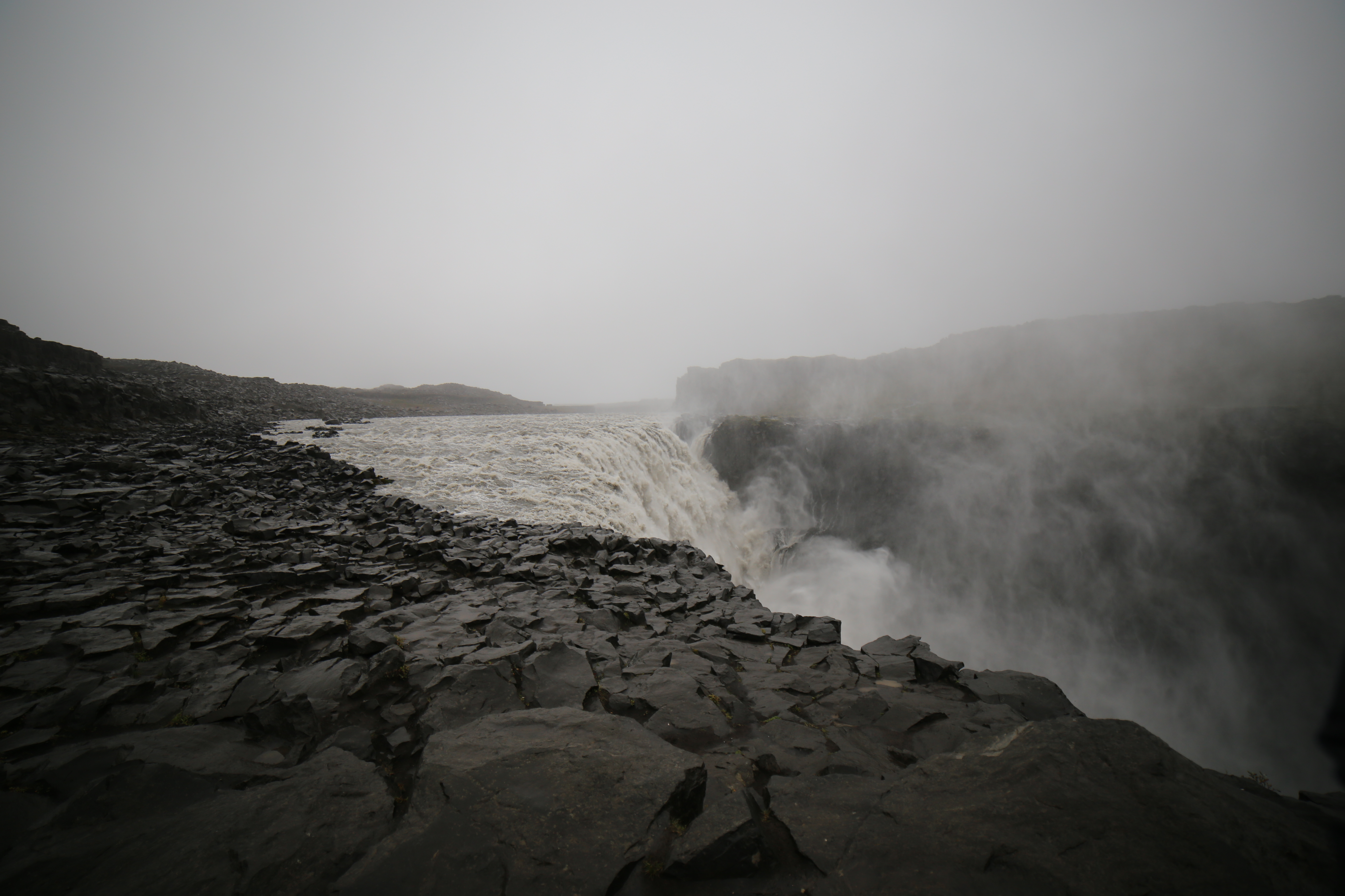 我們由 Goðafoss 開車大概個多兩個鐘來到了冰島東北面最大的瀑布景點 Dettifoss。Dettifoss 號稱為全歐洲最大的瀑布,大到我們要選擇到它的東堤還是西堤去看它。經過一輪資料搜集,我們揀了東堤,而最後亦證明是一個正確的決擇。點解?不是因為東堤望過去特別有氣勢 (一則我無從西堤望過不能比較,二則有時這都是個人的喜好),而是因為我們去到時的天氣認真麻麻,無太陽霧氣重之餘,天上還落著不知是細雨還是瀑布彈上來的水花;我們在東堤看了一轉已經是整件風褸濕透,你看所拍的照片都是天色沉沉的;但其實當天的風向是向著西堤那邊吹去,所以站在對岸的遊客仲大鑊!全濕之外還可能因為「太大霧」而看不清楚,多可惜!